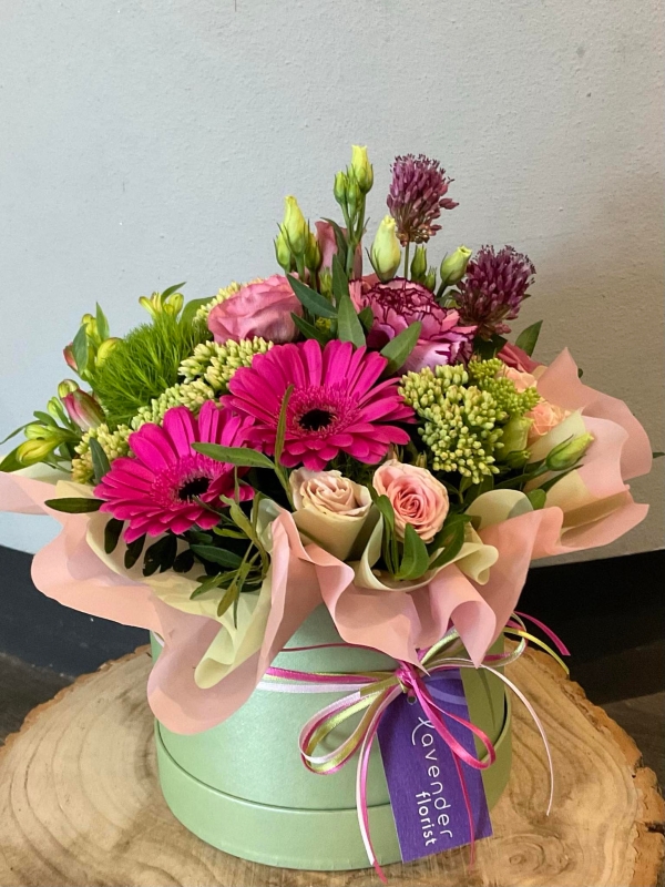 A pretty, compact design, containing a lovely selection of seasonal summer flowers.